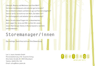 Für feelings Naildesign gestaltete ich ein komplettes Erscheinungsbild passend zur hochwertigen Wellness-Ausrichtung des Nagelstudios.